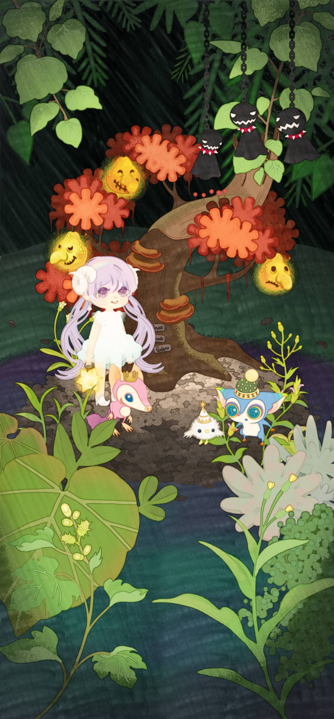 田舎の夜は灯りを持ってないと足元すら見えないけど、そんな感じを目指しました。#魔女の眠る島
