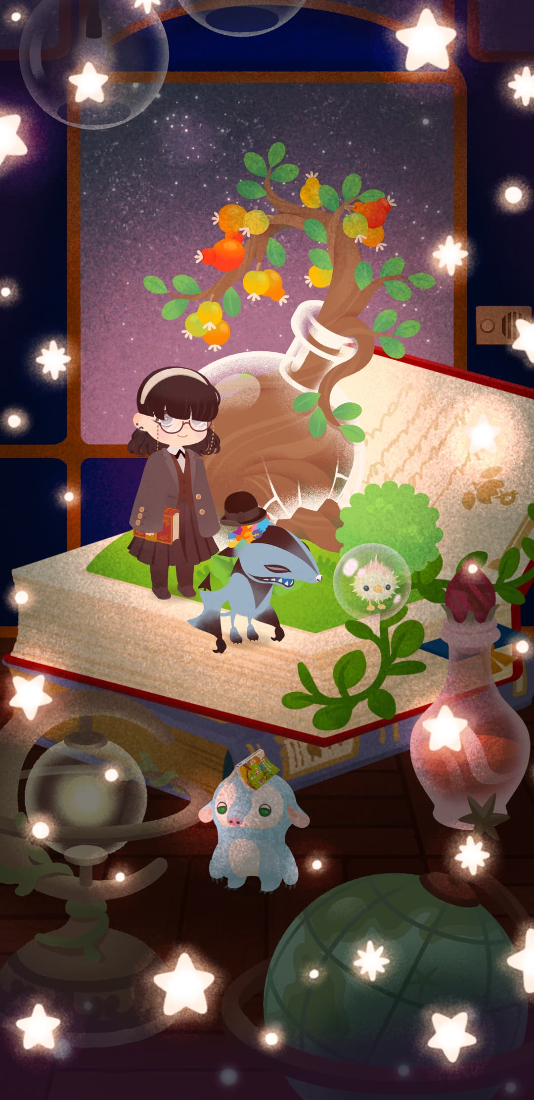 スターライトトレインの窓の木は他ガチャアイテムと合わせにくいけど頑張ってみました。