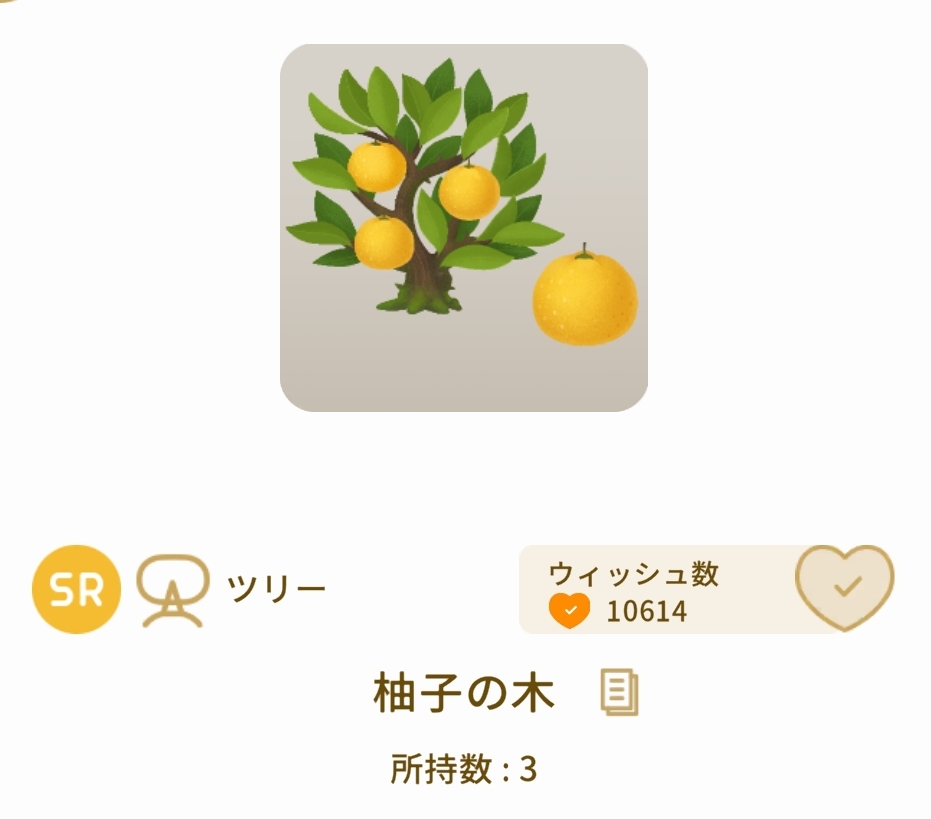 つい#ぽかぽか柚子湯の島 のガチャを回したら、なんと柚子の木が3本も当たってしまった。
