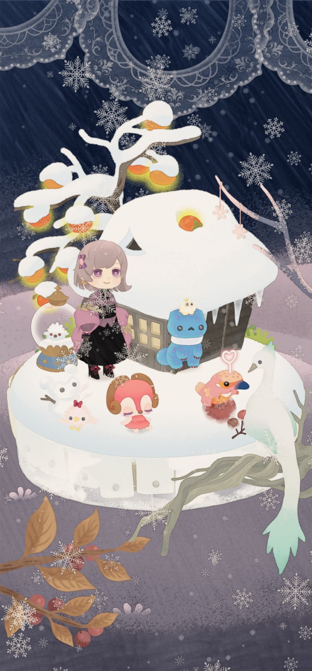 それにしても雪の結晶デカい…。#雪国の柿の島