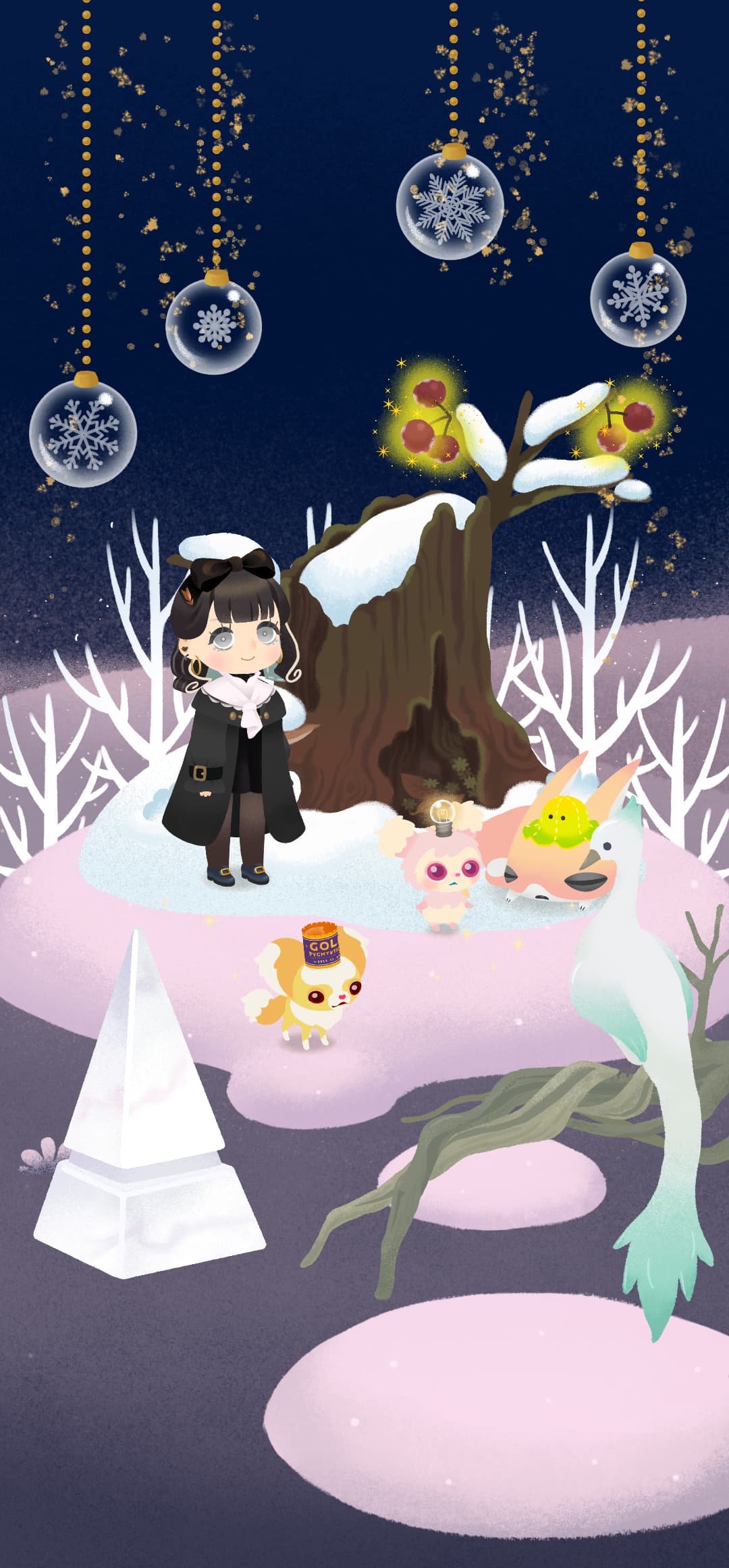 木に雪が積もってるからどうしても雪要素を取り入れなきゃ違和感あるのよね…。