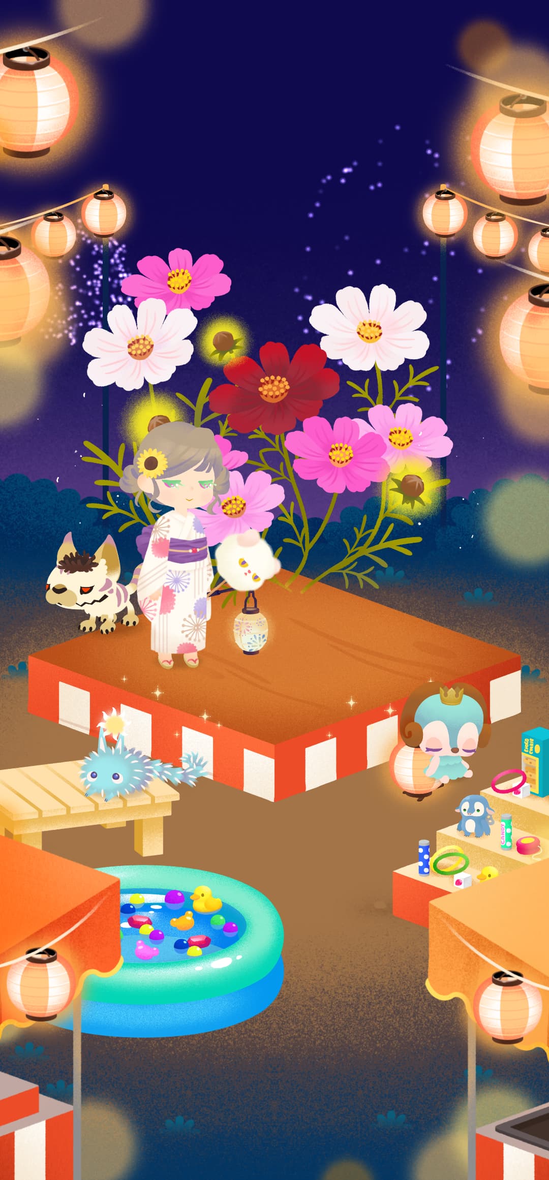 #屋台並ぶ夏祭りの島 をメインにしたレイアウト。