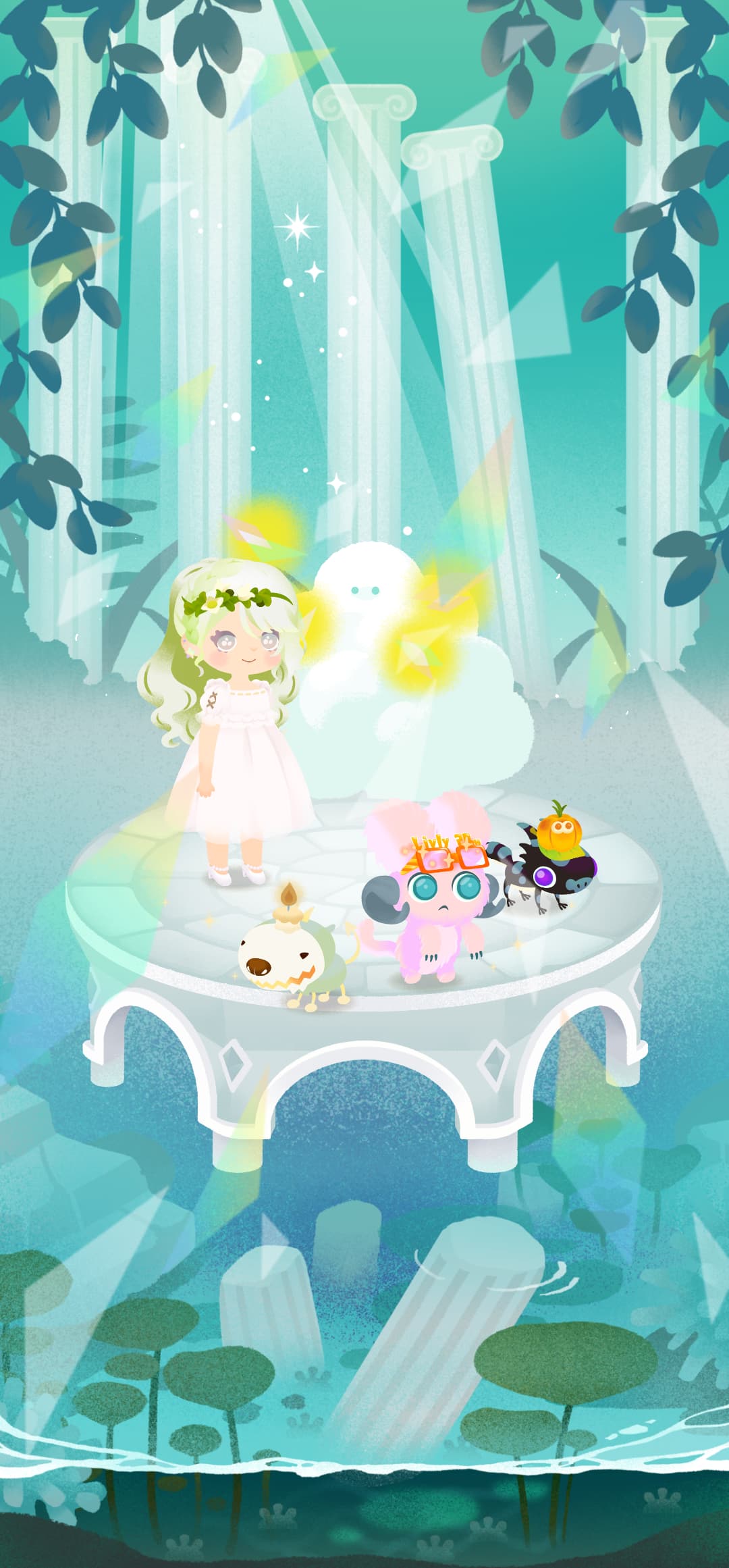 神殿みたいな場所に子雲は違和感しかないけど色合いがマッチしてたのでやってみた。