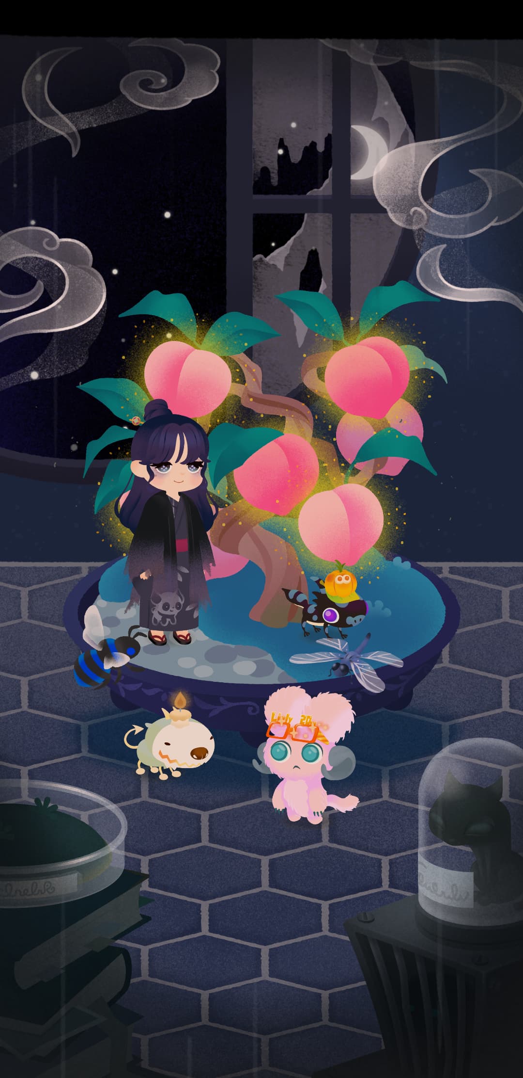 小さな月明かりだけが屋敷を照らしてます。#幻都の桃の島