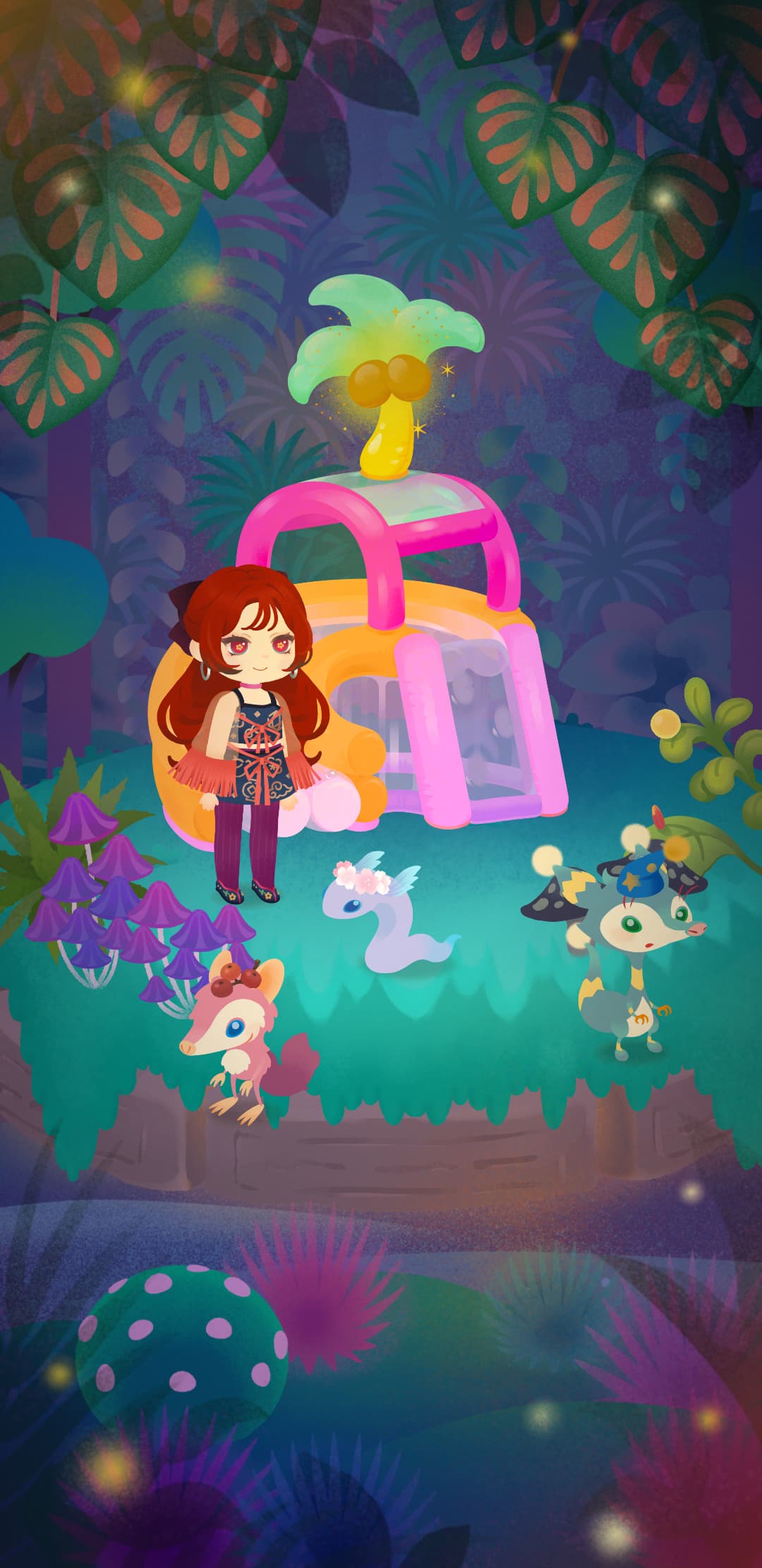 #カラフルなキノコの森