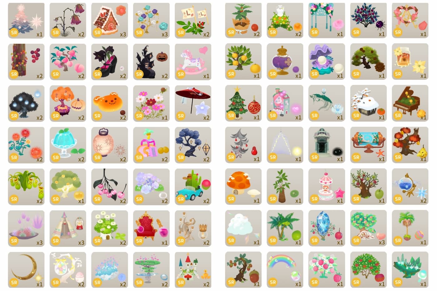 随分増えたよね。2022.12.22冬の切り株の木追加2022.12.29アクリルスタンド富士山の木追加2023.1.1雪椿盆栽の木追加2023.1.5フレーバーティーポットの木追加2023.1.12電子多肉植物の木追加2023.1.19春節を祝う銀柳の木追加2023.1.26蓄音機の木追加2023.2.1愛情を具現化した薔薇の木追加2023.2.9クラフト・ロリィタのランプの木追加2023.2.16電球テラリウムの木追加2023.2.23光り輝くオーロラ色の木追加2023.3.1ボタニカル・レンズの木追加2023.3.9花あかりの桜の木追加2023.3.24ナイトカーセルの木追加2023.4.1ハチミツの木、大惑星の木、ラビットトピアリーの木追加2023.4.13マンドレイクの容器の木追加2023.4.20白い鳥かごの木追加2023.4.27小さな滝の木追加2023.5.1白昼夢のイーゼルの木追加